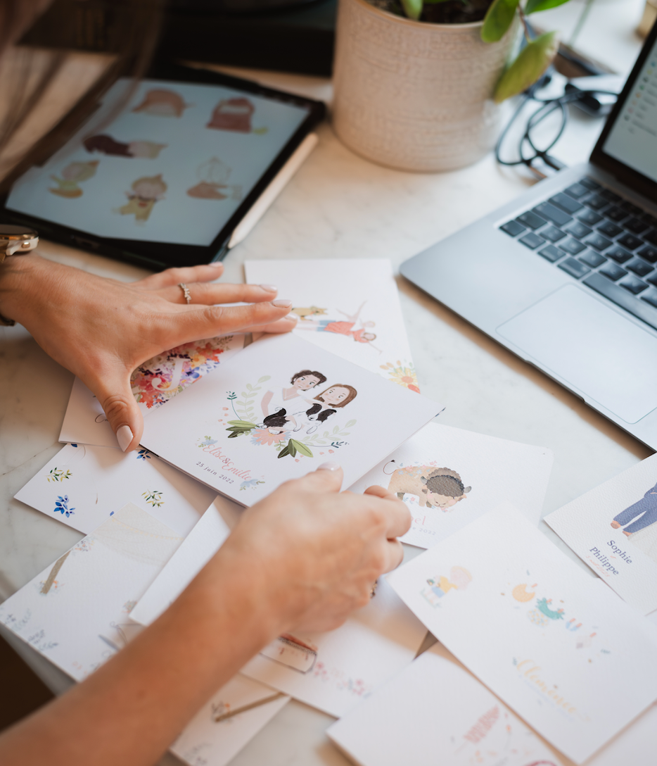 Pour garder un souvenir unique de ces moments importants de vos vies, je vous propose un service de création de faire-part sur-mesure. Je crée pour vous un visuel unique, à votre image, qui raconte votre histoire. -